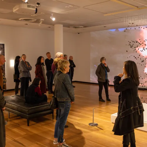 Join this curator-led tour of the Town Hall Gallery exhibition ‘The Uncomfortable Truth: Maree Clarke and megan evans’ .