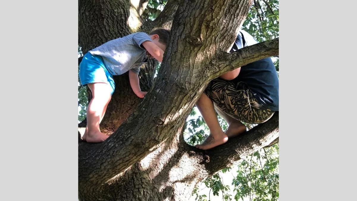 Artist statement: This photo was taken at Gordon Barnard Reserve, Balwyn North. I was busy photographing the beautiful old oak tree while my daughter, son and husband played at the playground next to it. It was late afternoon and the light under the tree was special. My husband and son came to see what I was doing. My son has just turned three and is very curious. My husband got him up in the tree with him. This moment is the first time in his young life that he climbed a tree.