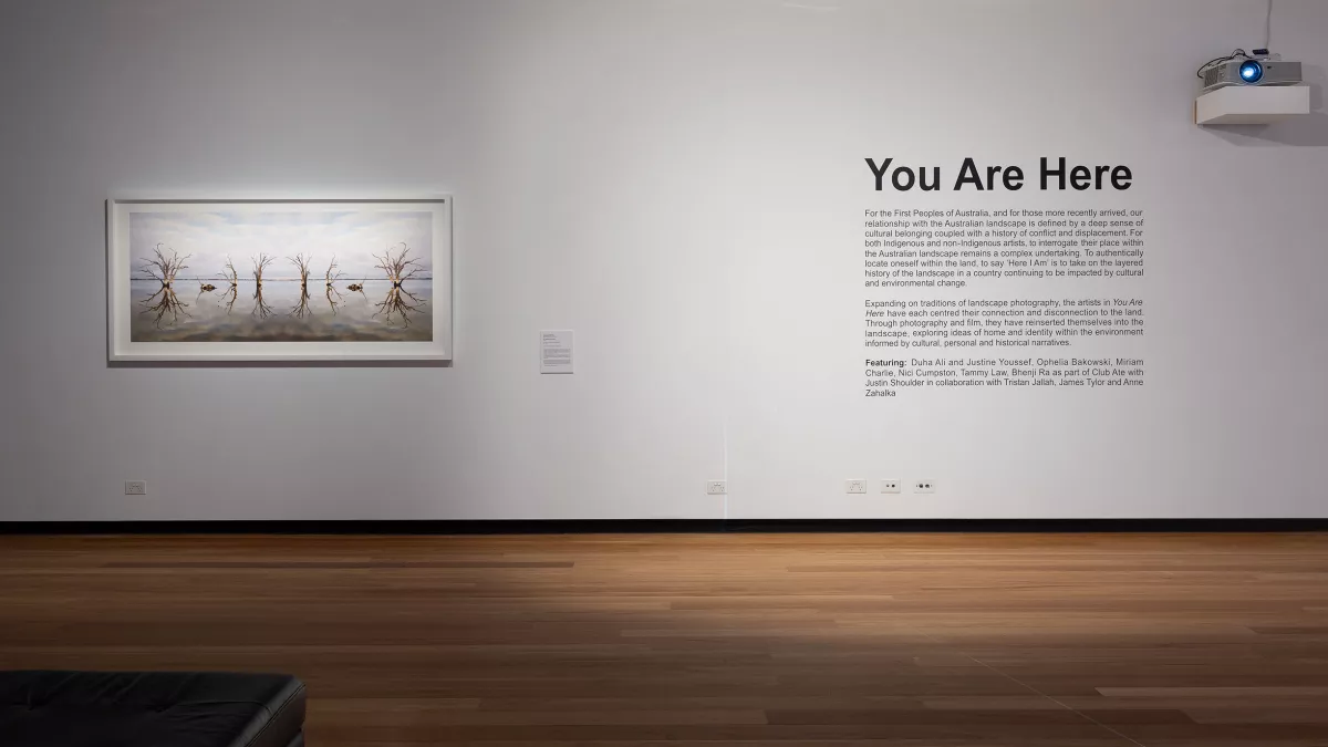 Expanding on traditions of landscape photography, the artists in You Are Here have each centred their connection and disconnection to the land. Through photography and film, they have reinserted themselves into the landscape, exploring ideas of home and identity within the environment informed by cultural, personal and historical narratives.