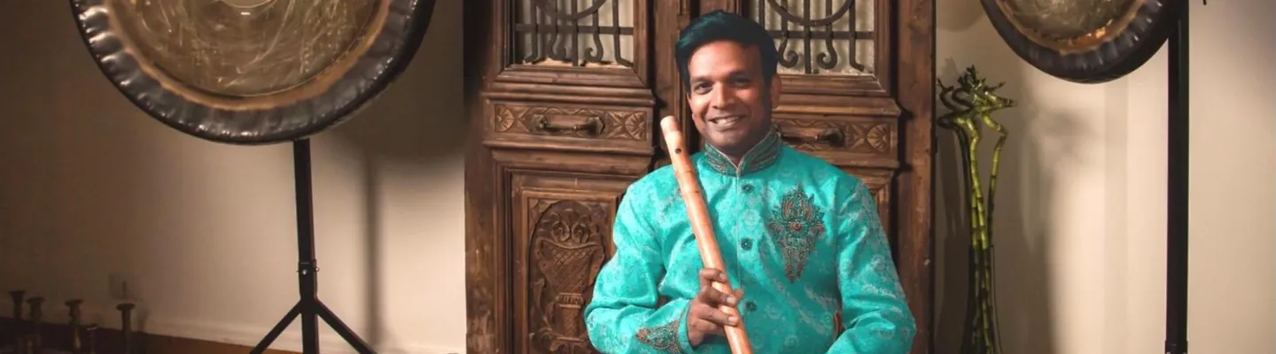 Vinod Prasanna, a distinguished bansuri virtuoso, hails from a lineage renowned for their mastery of the flute in India. With a career spanning over 25 years, Vinod has garnered acclaim for his exceptional performances of traditional and contemporary Indian music, showcasing his emotive melodies and impeccable improvisational skills that elevate the essence of Indian classical, world, and meditation music.